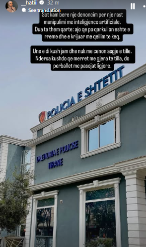Influencerja e njohur, Hati, ka ndarë me ndjekësit një zhvillim mjaft serioz ditën e sotme. Ajo ka publikuar një foto nga ambientet e Drejtorisë së Policisë në Tiranë, ku ka bërë të ditur se i është drejtuar autoriteteve për të dorëzuar një denoncim zyrtar.