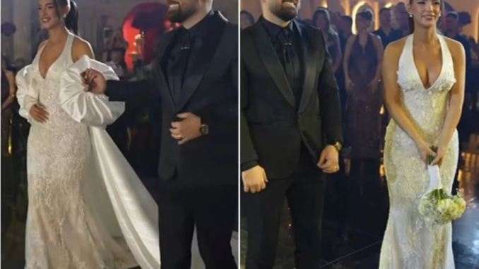 Çifti ka shkëlqyer – nusja me fustan të bardhë dhe Veseli me kostume elegante.