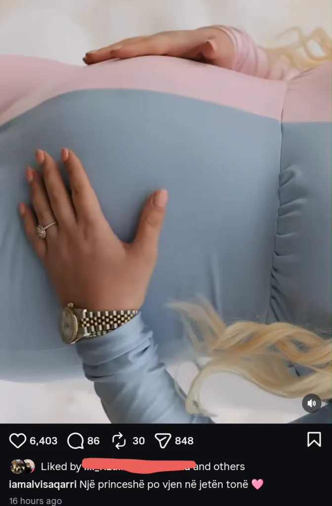 Krahas pamjeve ku çifti shfaqet duke u përqafuar plot emocion, Alvisa ka zgjedhur një mbishkrim mjaft të ndjerë për të ndarë lajmin me publikun: “Një princeshë po vjen në jetën tonë 🩷”.