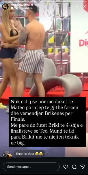 “Më parë do futet Briki te 4-shja e finalistëve se Teo. Mund të iki para Brikit me të njëjtën teknikë në Big,” ka shtuar ajo, duke e bërë këtë një paralajmërim të qartë për Mateo.