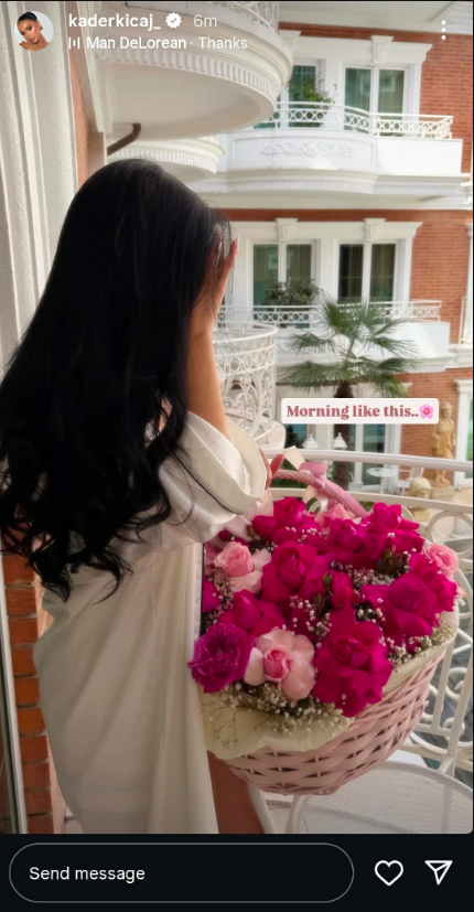 Ajo ka publikuar një fotografi ku tregon se më mëngjes ka pranuar një buqetë të madhe me lule.