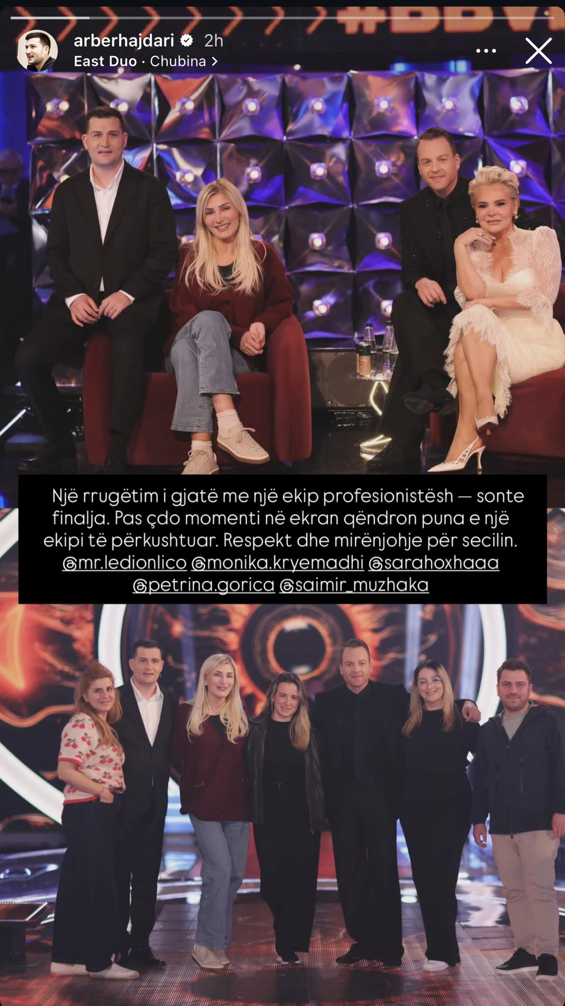 Sonte mbahet finalja e madhe e “Big Brother VIP Albania”. Opinionisti Arbër Hajdari ka ndarë një moment nga prapaskenat, duke publikuar një fotografi ku shfaqen prezantuesi Ledion Liço dhe Sara Hoxha në të njëjtin ambient.