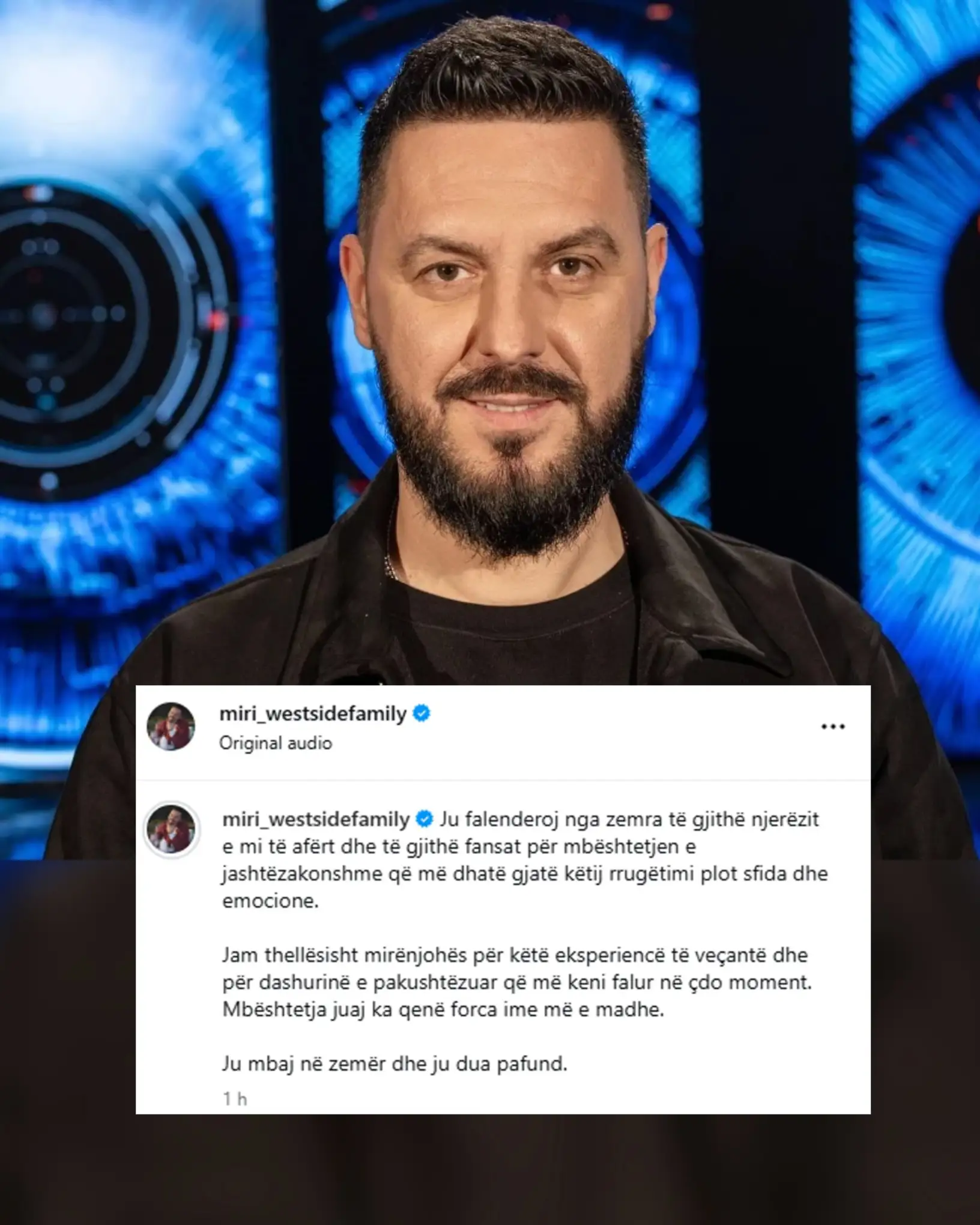 Në publikimin e tij, Miri ka theksuar mirënjohjen për familjarët, miqtë dhe fansat, duke nënvizuar se përkrahja e tyre ka qenë shtysa kryesore për të përballuar çdo moment brenda shtëpisë. Krahas fjalëve, ai ka ndarë edhe një video me disa nga momentet më të veçanta nga aventura e tij në BBVA, duke rikthyer në vëmendje emocionet dhe dinamikat që e shoqëruan gjatë qëndrimit në lojë.